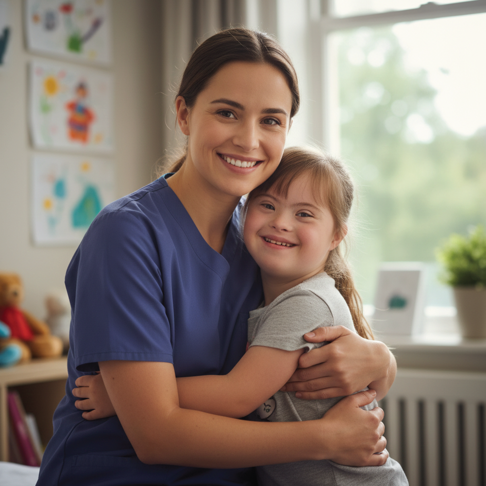 En Enfermeras con Corazón ofrecemos atención especializada en casa para personas con síndrome de Down, brindando apoyo profesional, seguimiento clínico y acompañamiento humano tanto al paciente como a su familia.